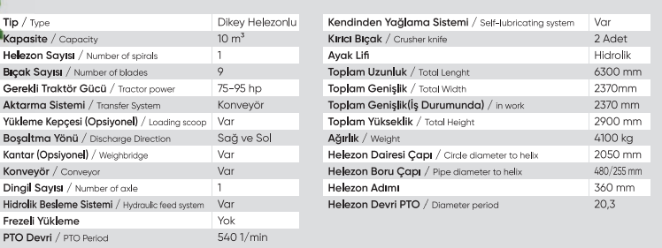 10 m³ Yem Karma Ve Dağıtma Makinesi