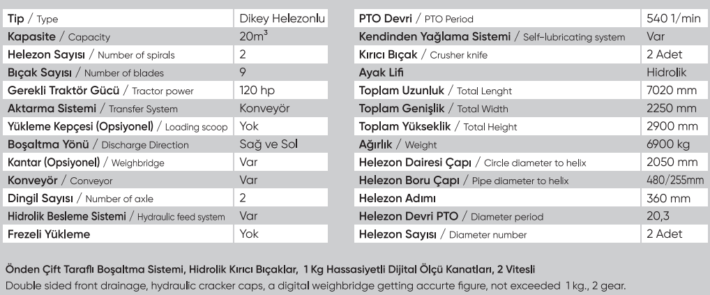 20 m³ Yem Karma Ve Dağıtma Makinesi
