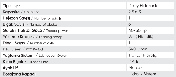 2,5 m³ Yem Karma Ve Dağıtma Makinesi
