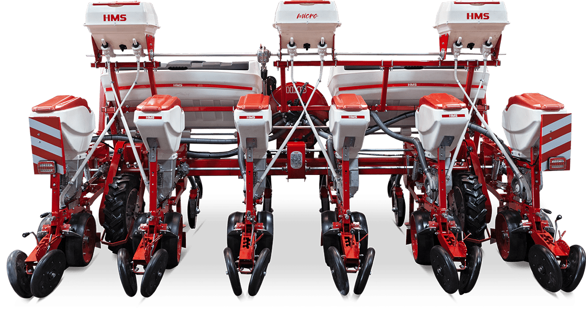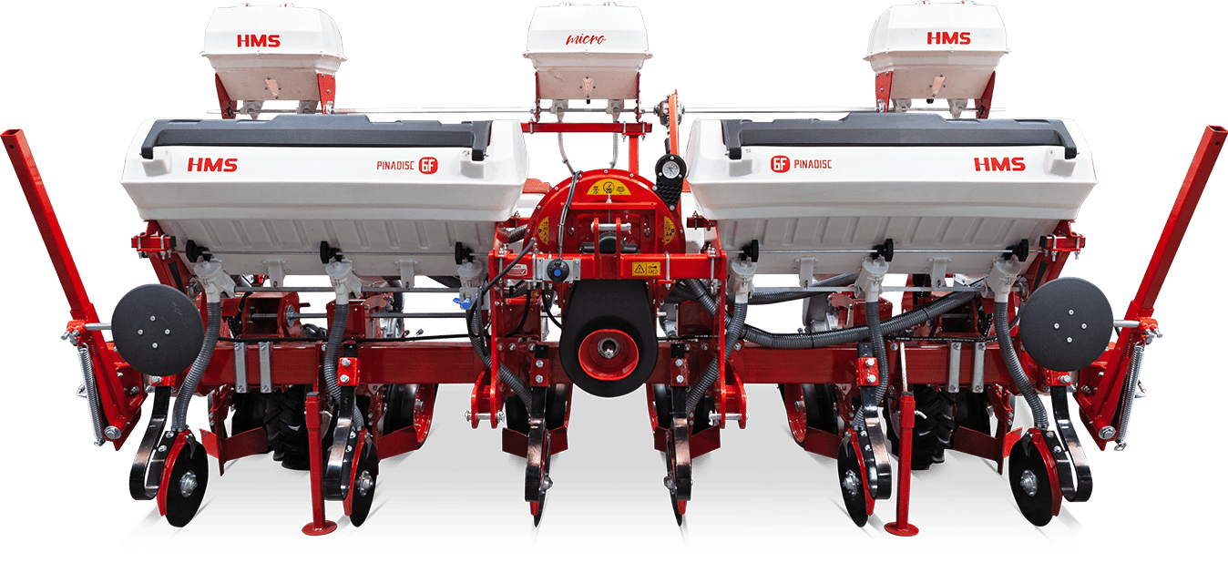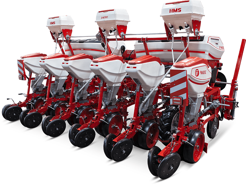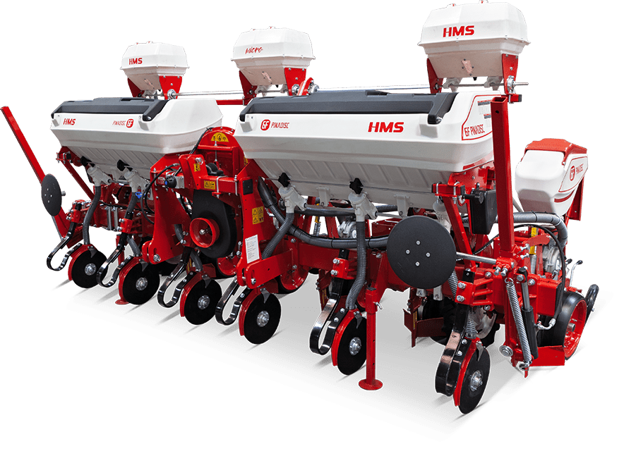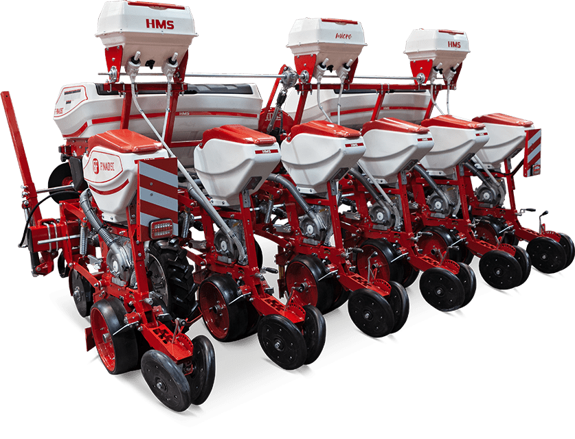 HMS DİSKLİ PNÖMATİK HASSAS EKİM MAKİNALARI her çeşit tohumun hassas olarak, istenilen ekim aralığında ve sıra üzeri mesafesinde ekilmesini sağlar. İsteğe bağlı olarak 4-6-8 sıralı olarak imal edilebilir. Ekici ünitelerde tohum yatağı disk vasıtasıyla açılır. Her ekim ünitesinde özel malzemeden üretilmiş, 2-adet disk bulunmaktadır. Ekici ünitelerin diskli tip olması ve şase önüne takılabilen kesici diskler sayesinde işlenmiş veya yarı işlenmiş sap kalıntıları bulunan tarlalarda çalışabilir. Tekerlekten alınan hareketin ekim ünitelerine iletimi şaft mekanizması ile yapıldığından, sıra üstü mesafelerde hassas ekim yapılabilmektedir. Ekici Ünitelerin her iki tarafında bulunan lastik tekerler sayesinde her türlü toprak şartlarında hassas olarak Derinlik ayarı yapılabilir. Tohum ünite arkasında bulunan V baskı tekerlekleri vasıtasıyla sıkıştırılır. Arka baskı tekerinin uyguladığı basınç ve açı yay vasıtası ile ayarlanabilir. V baskı tekerlekleri toprakta kaymak tabakası oluşumunu önler. Diskli ekim üniteleri erken tavda ekim yapmaya imkan sağlar. Disk ayaklı pnömatik ekim makinaları sırta ekim yapılabilmeye uygundur. Sırtları bozmaz. Tohum yatağı dönerek çalışan diskler tarafından açıldığından sertleşmez. Bitki gelişimine uygundur ve traktöre fazla yük getirmez. Üniteler istenildiği zaman kolayca yol ve iş durumuna geçer. İsteğe göre değişik aksesuarlar montaj edilebilir. Yüksek çalışma hızı ve mükemmel performansı ile zamandan tasarruf ve yüksek verim sağlayan bir ekim makinasıdır.