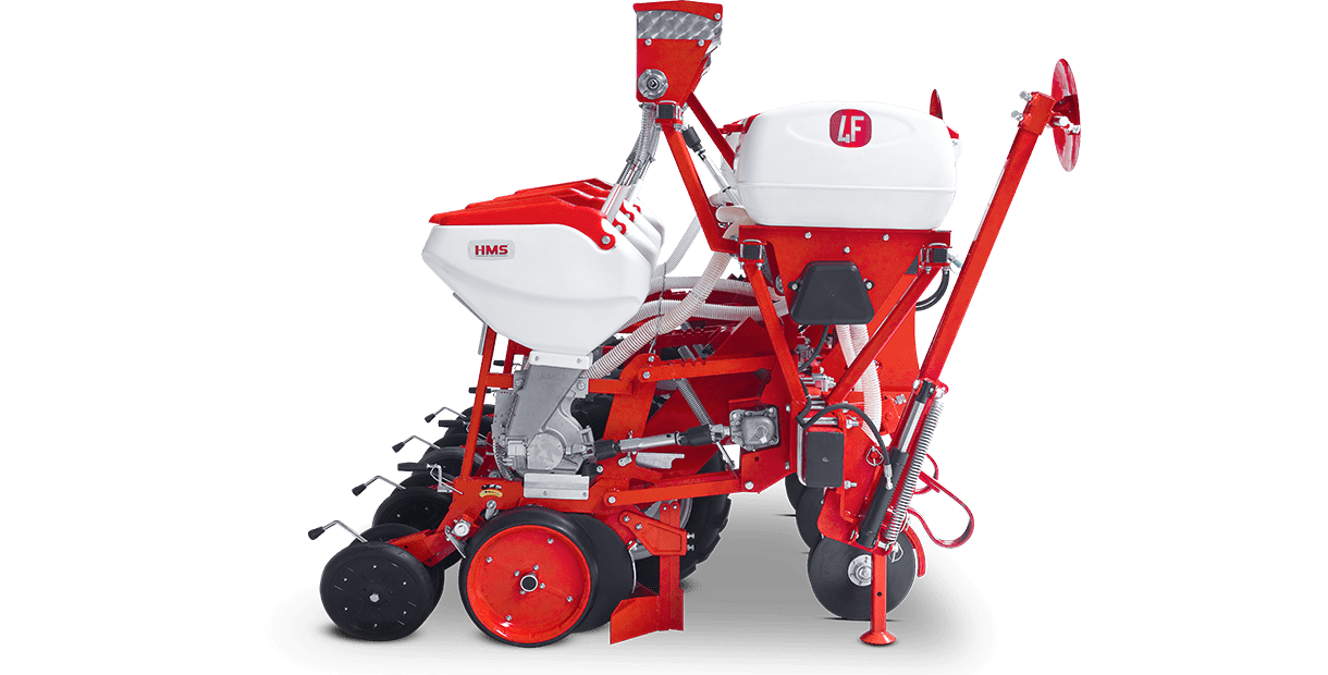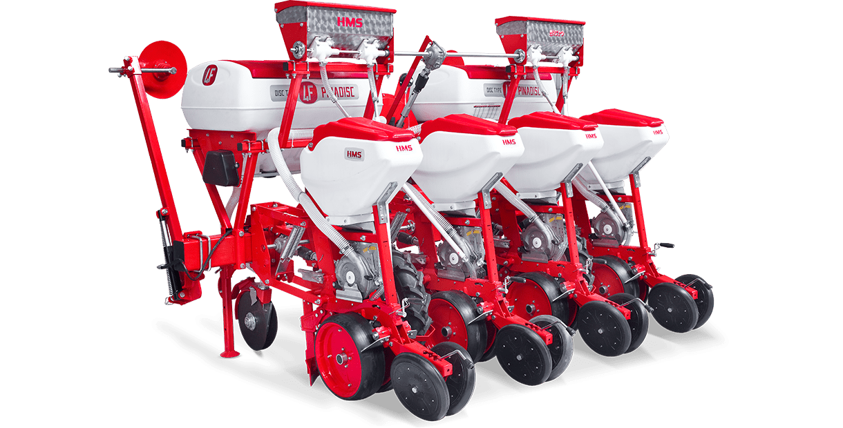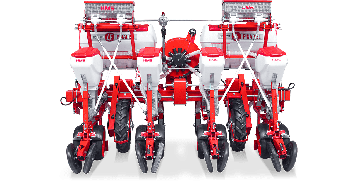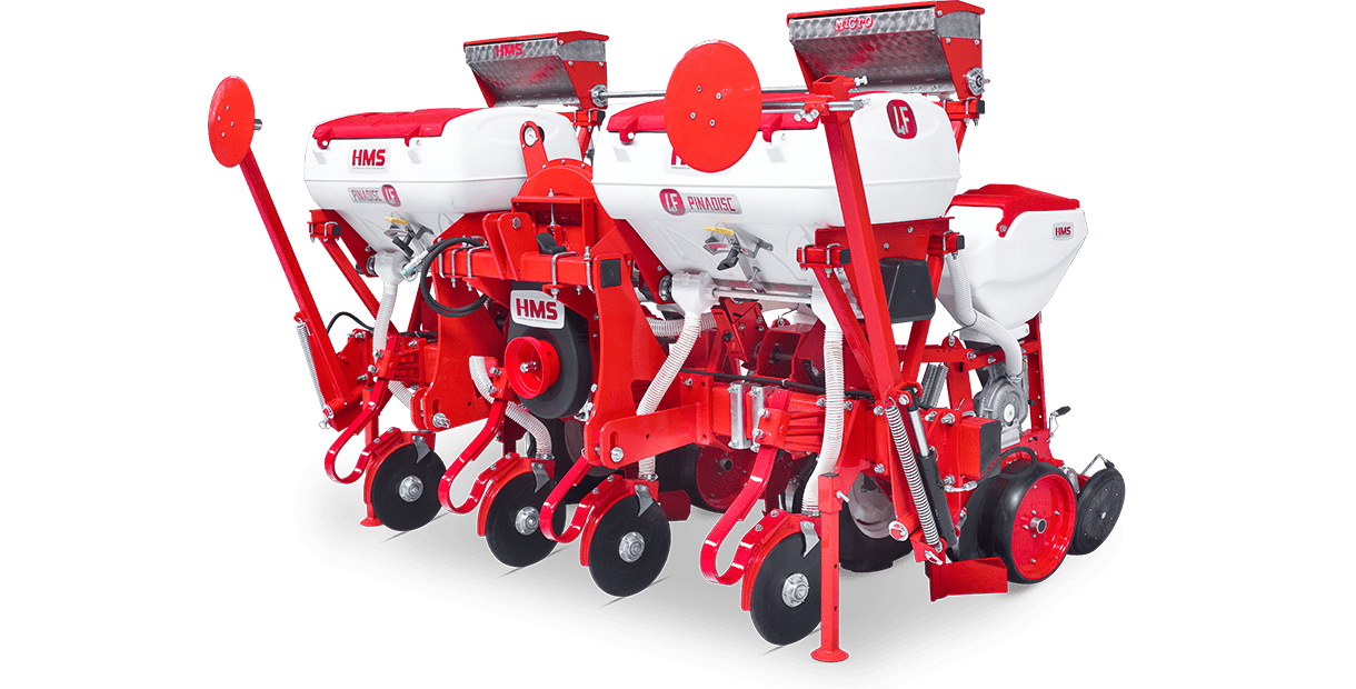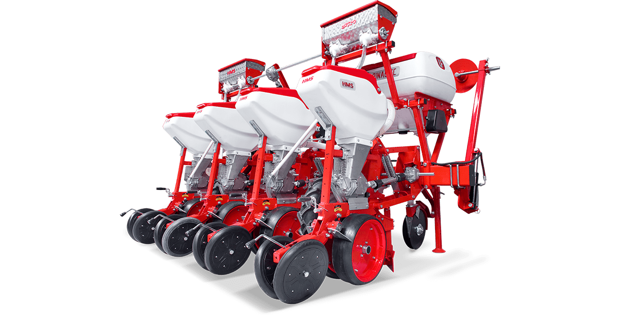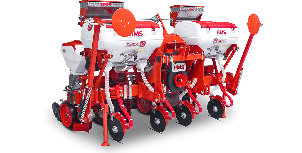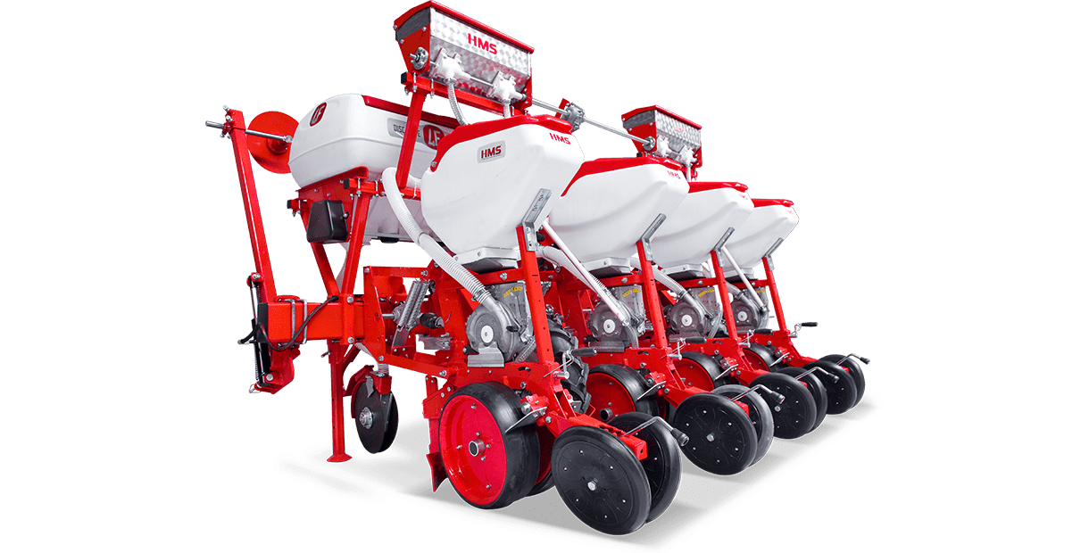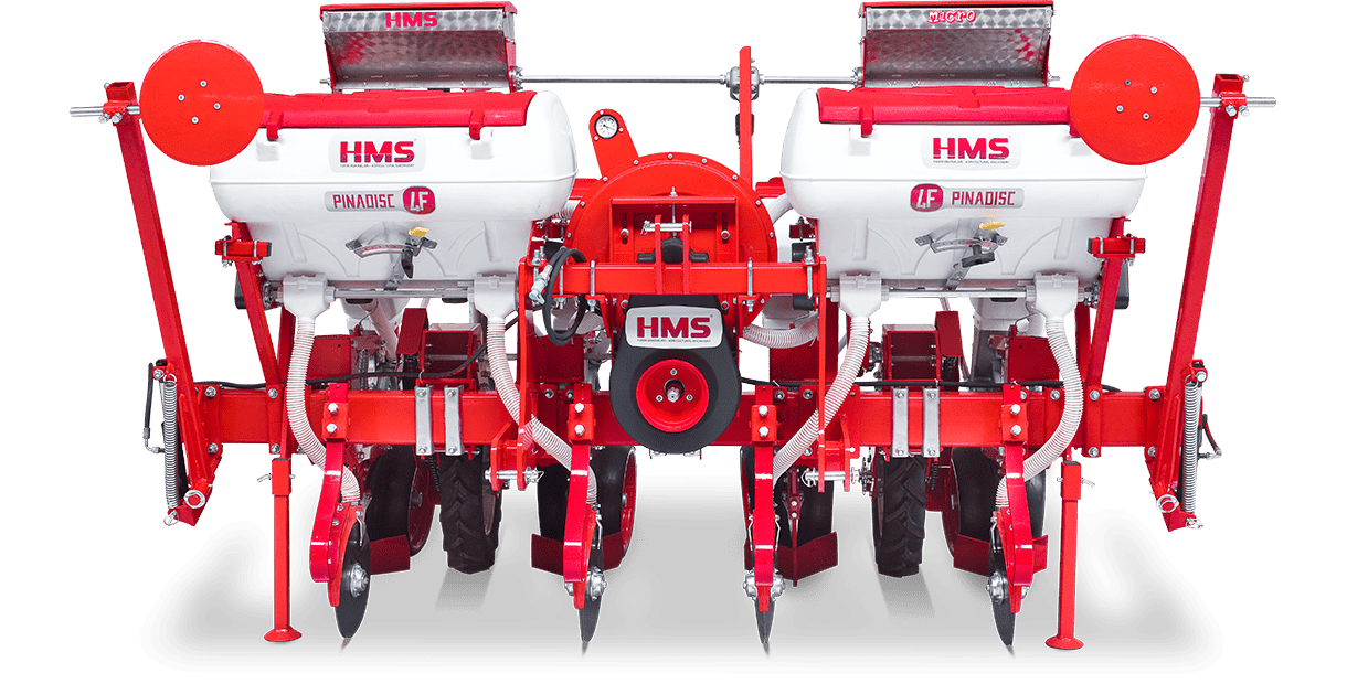 HMS DİSKLİ PNÖMATİK HASSAS EKİM MAKİNALARI her çeşit tohumun hassas olarak, istenilen ekim aralığında ve sıra üzeri mesafesinde ekilmesini sağlar. İsteğe bağlı olarak 4-6-8 sıralı olarak imal edilebilir. Ekici ünitelerde tohum yatağı disk vasıtasıyla açılır. Her ekim ünitesinde özel malzemeden üretilmiş, 2-adet disk bulunmaktadır. Ekici ünitelerin diskli tip olması ve şase önüne takılabilen kesici diskler sayesinde işlenmiş veya yarı işlenmiş sap kalıntıları bulunan tarlalarda çalışabilir. Tekerlekten alınan hareketin ekim ünitelerine iletimi şaft mekanizması ile yapıldığından, sıra üstü mesafelerde hassas ekim yapılabilmektedir. Ekici Ünitelerin her iki tarafında bulunan lastik tekerler sayesinde her türlü toprak şartlarında hassas olarak Derinlik ayarı yapılabilir. Tohum ünite arkasında bulunan V baskı tekerlekleri vasıtasıyla sıkıştırılır. Arka baskı tekerinin uyguladığı basınç ve açı yay vasıtası ile ayarlanabilir. V baskı tekerlekleri toprakta kaymak tabakası oluşumunu önler. Diskli ekim üniteleri erken tavda ekim yapmaya imkan sağlar. Disk ayaklı pnömatik ekim makinaları sırta ekim yapılabilmeye uygundur. Sırtları bozmaz. Tohum yatağı dönerek çalışan diskler tarafından açıldığından sertleşmez. Bitki gelişimine uygundur ve traktöre fazla yük getirmez. Üniteler istenildiği zaman kolayca yol ve iş durumuna geçer. İsteğe göre değişik aksesuarlar montaj edilebilir. Yüksek çalışma hızı ve mükemmel performansı ile zamandan tasarruf ve yüksek verim sağlayan bir ekim makinasıdır.