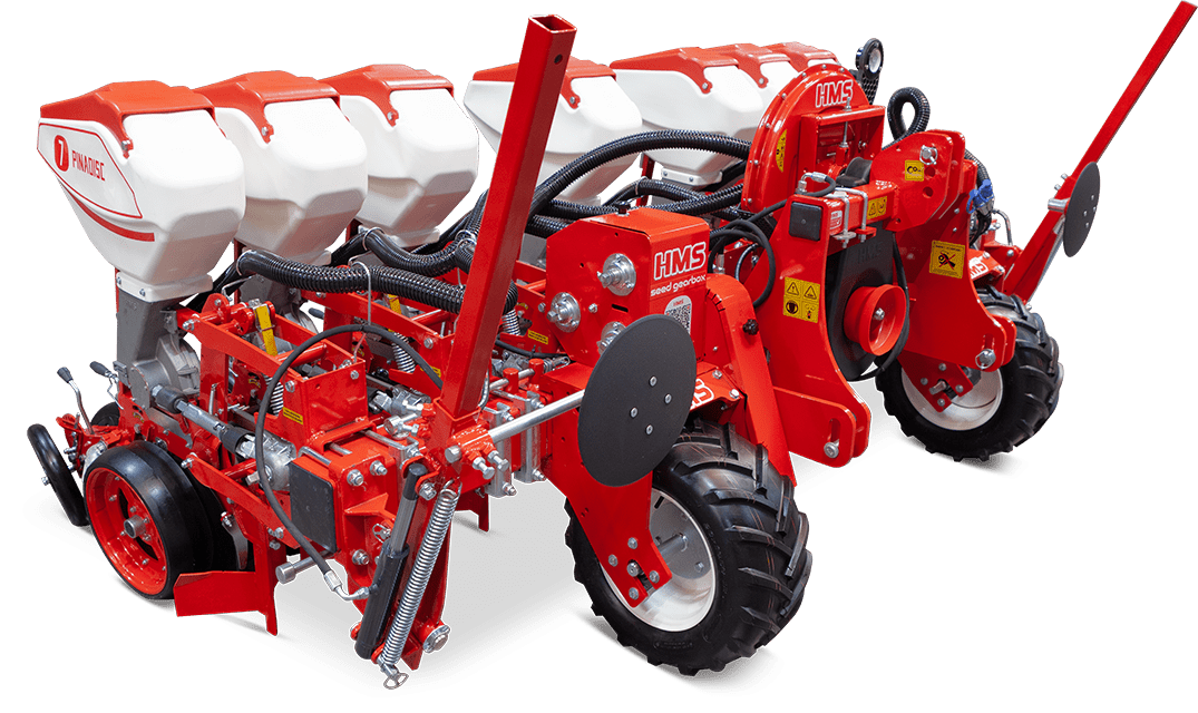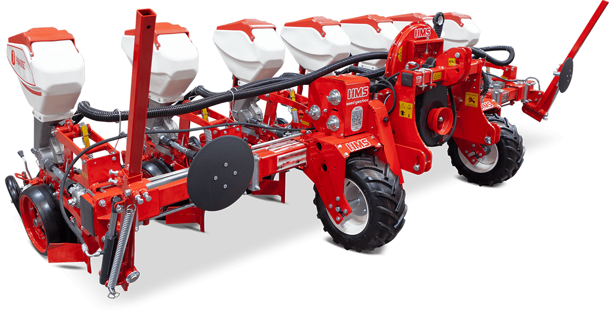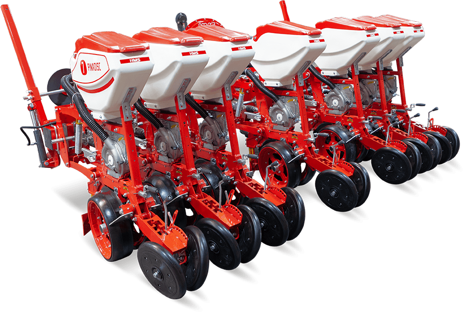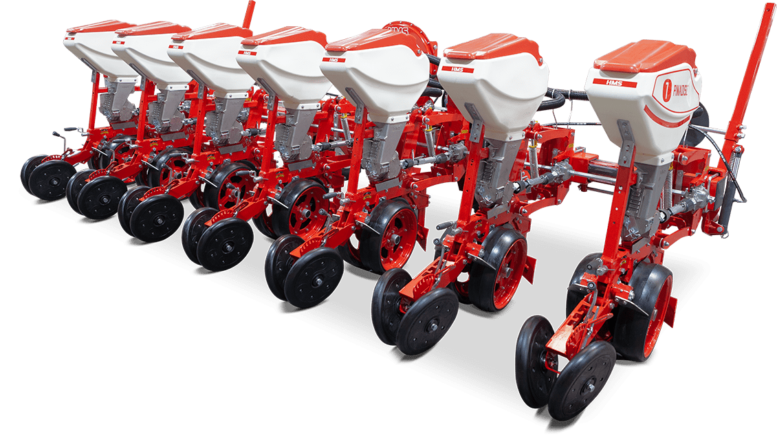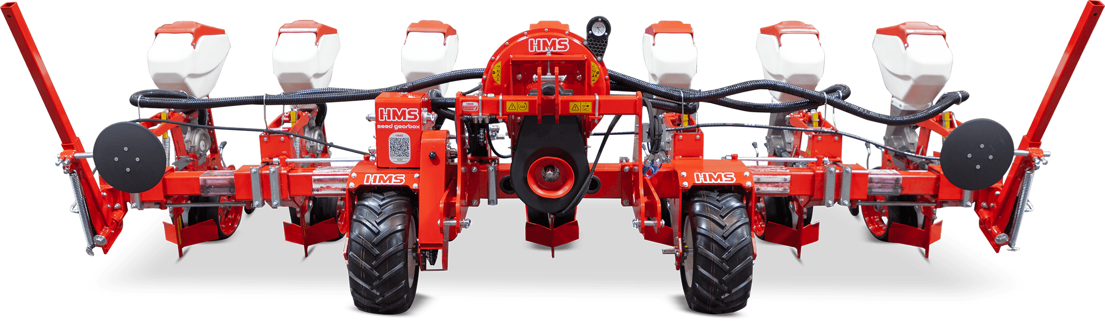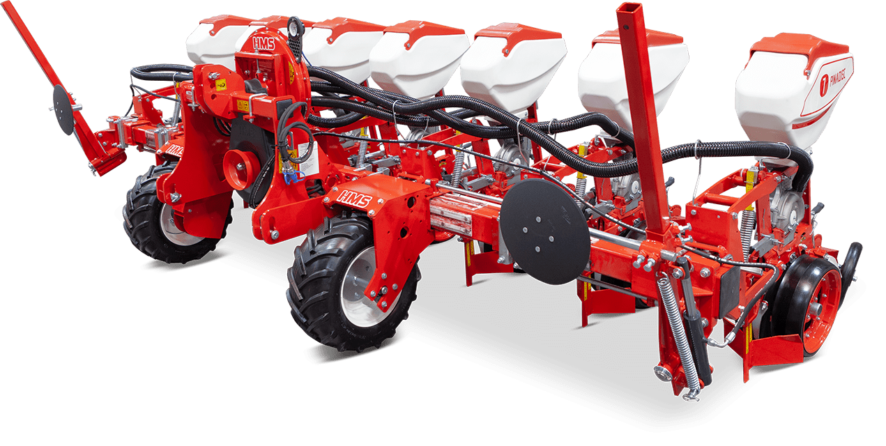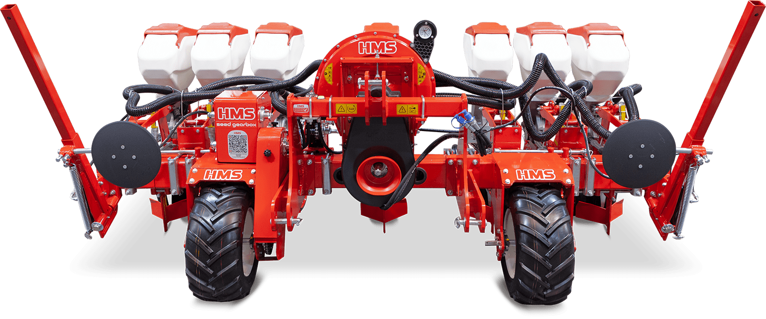 HMS DİSKLİ PNÖMATİK HASSAS EKİM MAKİNALARI her çeşit tohumun hassas olarak, istenilen ekim aralığında ve sıra üzeri mesafesinde ekilmesini sağlar. İsteğe bağlı olarak 4-6-8 sıralı olarak imal edilebilir. Ekici ünitelerde tohum yatağı disk vasıtasıyla açılır. Her ekim ünitesinde özel malzemeden üretilmiş, 2-adet disk bulunmaktadır. Ekici ünitelerin diskli tip olması ve şase önüne takılabilen kesici diskler sayesinde işlenmiş veya yarı işlenmiş sap kalıntıları bulunan tarlalarda çalışabilir. Tekerlekten alınan hareketin ekim ünitelerine iletimi şaft mekanizması ile yapıldığından, sıra üstü mesafelerde hassas ekim yapılabilmektedir. Ekici Ünitelerin her iki tarafında bulunan lastik tekerler sayesinde her türlü toprak şartlarında hassas olarak Derinlik ayarı yapılabilir. Tohum ünite arkasında bulunan V baskı tekerlekleri vasıtasıyla sıkıştırılır. Arka baskı tekerinin uyguladığı basınç ve açı yay vasıtası ile ayarlanabilir. V baskı tekerlekleri toprakta kaymak tabakası oluşumunu önler. Diskli ekim üniteleri erken tavda ekim yapmaya imkan sağlar. Disk ayaklı pnömatik ekim makinaları sırta ekim yapılabilmeye uygundur. Sırtları bozmaz. Tohum yatağı dönerek çalışan diskler tarafından açıldığından sertleşmez. Bitki gelişimine uygundur ve traktöre fazla yük getirmez. Üniteler istenildiği zaman kolayca yol ve iş durumuna geçer. İsteğe göre değişik aksesuarlar montaj edilebilir. Yüksek çalışma hızı ve mükemmel performansı ile zamandan tasarruf ve yüksek verim sağlayan bir ekim makinasıdır.